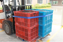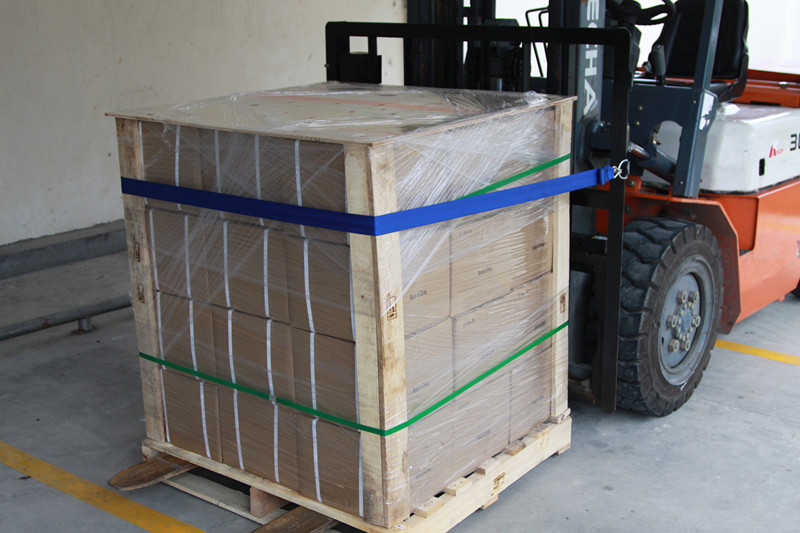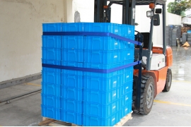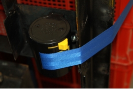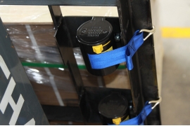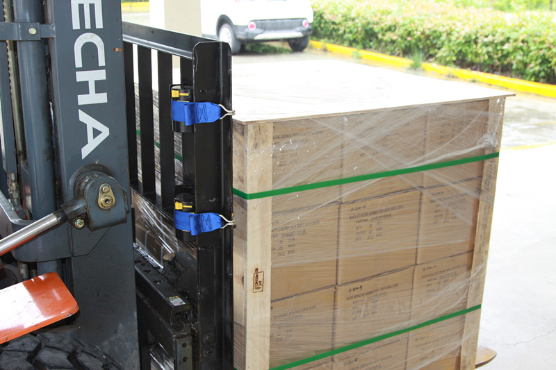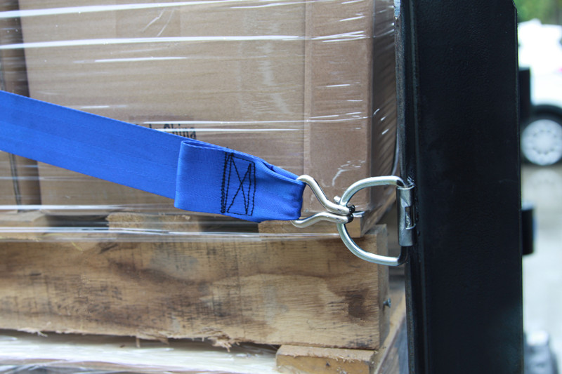 ● The binding strap is installed on the right side of the forklift guard rail frame (the right-hand side of the forklift driver).